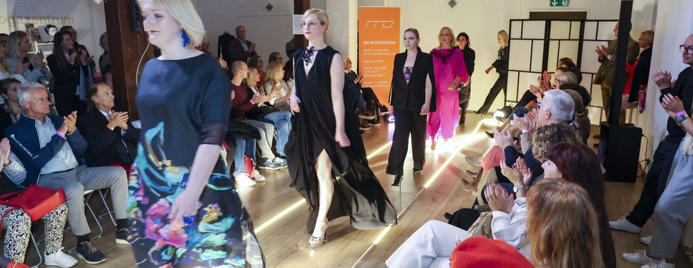 Am 18. Oktober 2025 wurde Mödling zum Schauplatz eines außergewöhnlichen Events: Die Kooperation ORANGE & PINK präsentierte mit „Symbio" eine Modenschau, die Kunst, Mode und Handwerk zu einem sinnlichen Gesamterlebnis vereinte. Über 100 begeisterte Gäste erlebten, wie die Gemälde von Isabel Breininger auf Stoffe übertragen, von Dagmar Mikolics zu tragbaren Kunstwerken transformiert und durch den handgefertigten Schmuck von Rike Pinheiro vollendet wurden.